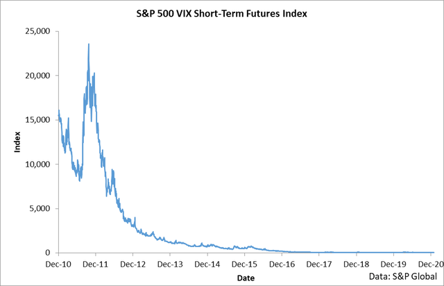 To start this piece off, let's talk over the nuances of SVXY's methodology and underlying index. This may seem like a wearisome mode to start off a piece nearly an instrument which purportedly tracks market place volatility, but information technology is essential to grasp the nuance and moving pieces at work in this ETF. Put simply, SVXY is a strong ETF due to its brusk position on an underlying index which has a proven history of destroying wealth.