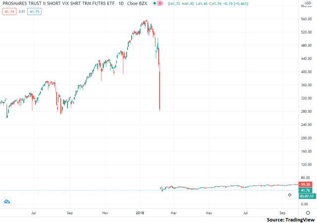 The key problem though is this: buying SVXY means you're shorting the VIX. And the VIX has been known to brand incredibly stiff movements in very short social club. A stiff movement in the VIX to the upside means a strong movement to the downside in SVXY. For example, SVXY was crushed in the volatility run-up of 2018.