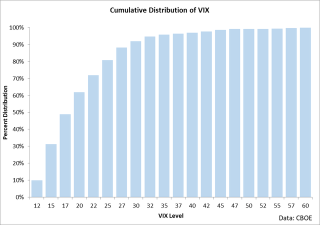 In the long run, the VIX really doesn't get anywhere. What I mean by this is that information technology is almost always betwixt 15 and 25.